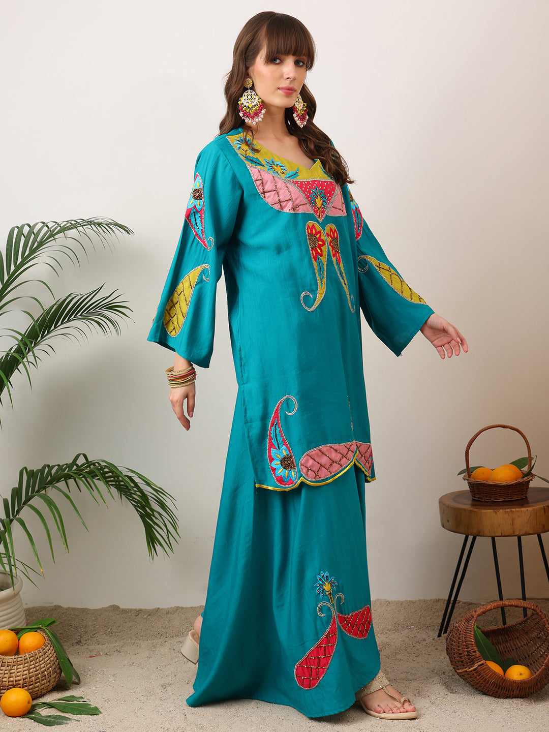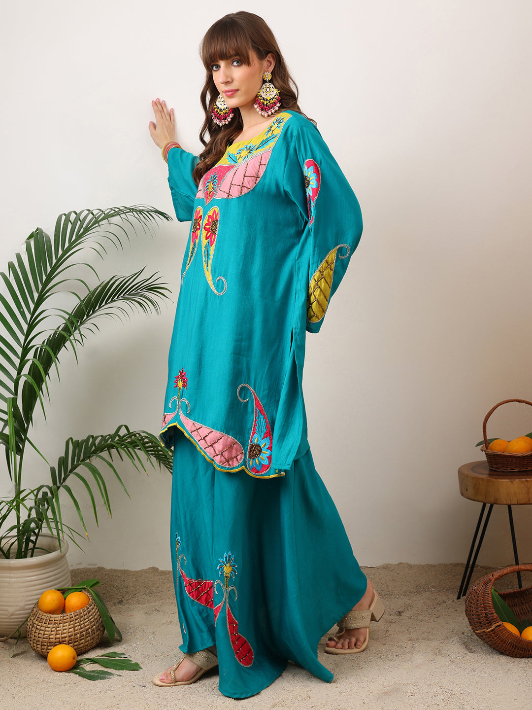 Party Wear Handwork Neon Blue Cord-Set for Women | Trending Cord- Set
